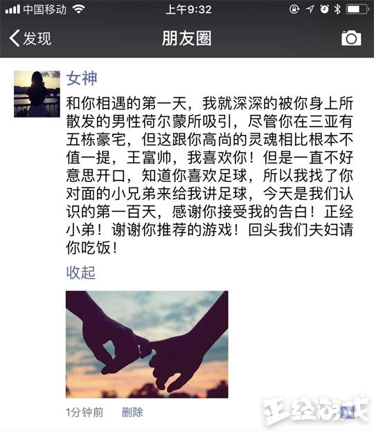 自从给女神推荐完这款游戏后,女神就十来天没理我,直到后来我在朋友圈上看到这样一条动态……