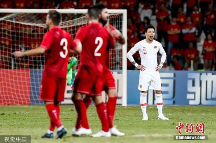 资料图:2019年11月14日,世预赛亚洲区40强赛中,国足客场1:2不敌叙利亚,比赛中对手先入一球,此后武磊凌空推射扳平比分,张琳芃不慎乌龙导致国足再度落后。图为张琳芃在比赛中。图片来源:视觉中国