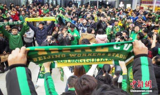 资料图:2018年12月1日,北京国安俱乐部众将搭乘火车抵达北京南站,数千球迷到场迎接。中新网记者 李霈韵 摄