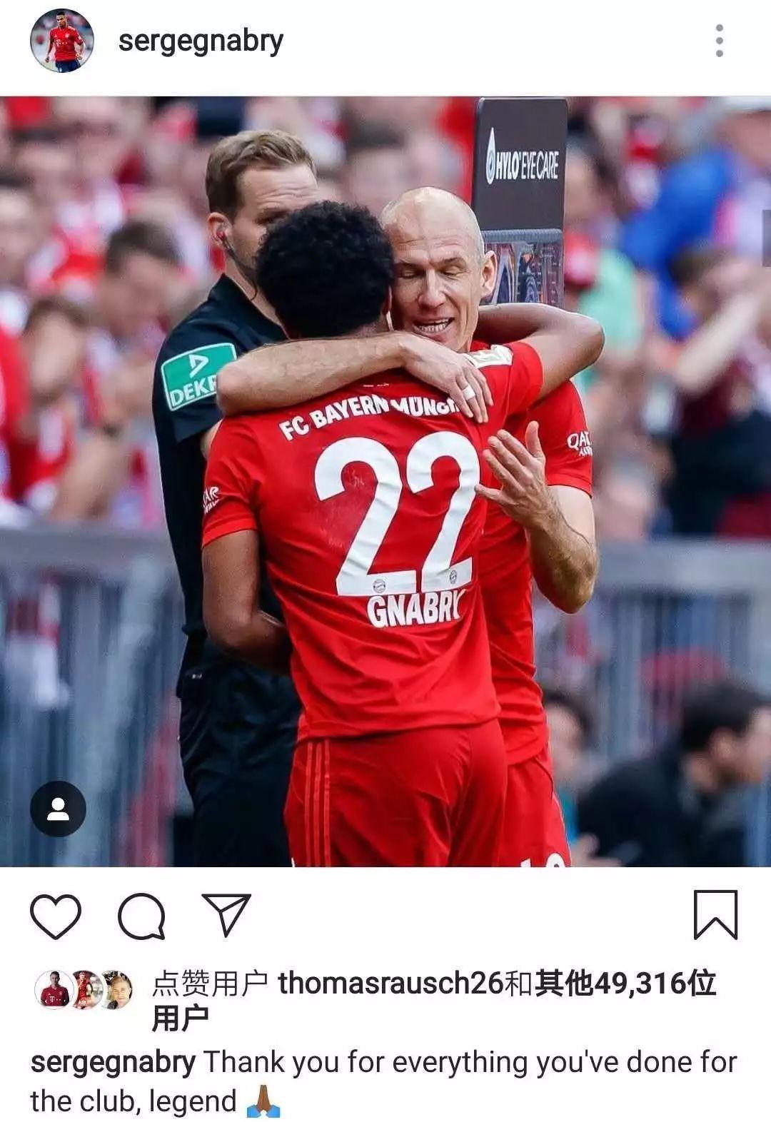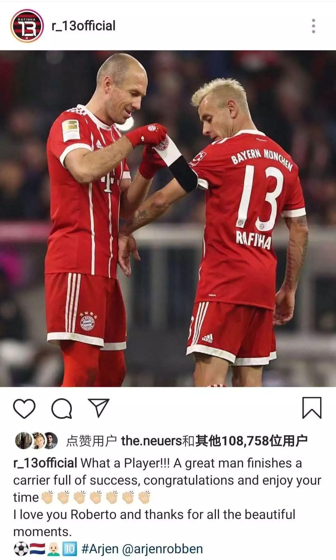 这是怎样的一个球员啊!一个伟大的人带着满载的荣誉结束了他的职业生涯。祝贺你,请享受属于你的时刻。爱你噢罗本,感谢所有美妙的瞬间。