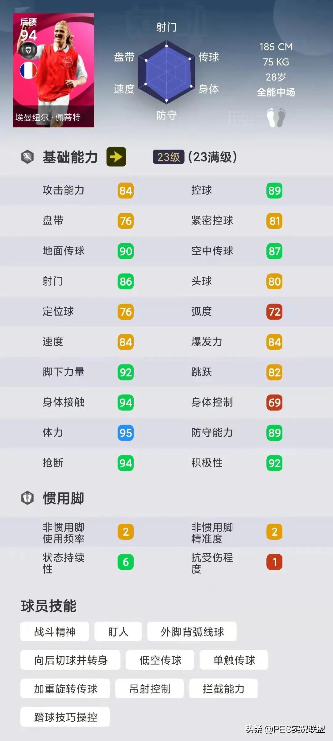 FIFA游戏中佩蒂特的地位极高,而在实况足球这边却一度沦为鸡肋,直到传奇状态固定为B的机制出炉以后,方才真正成为游戏中的毕业级后腰。