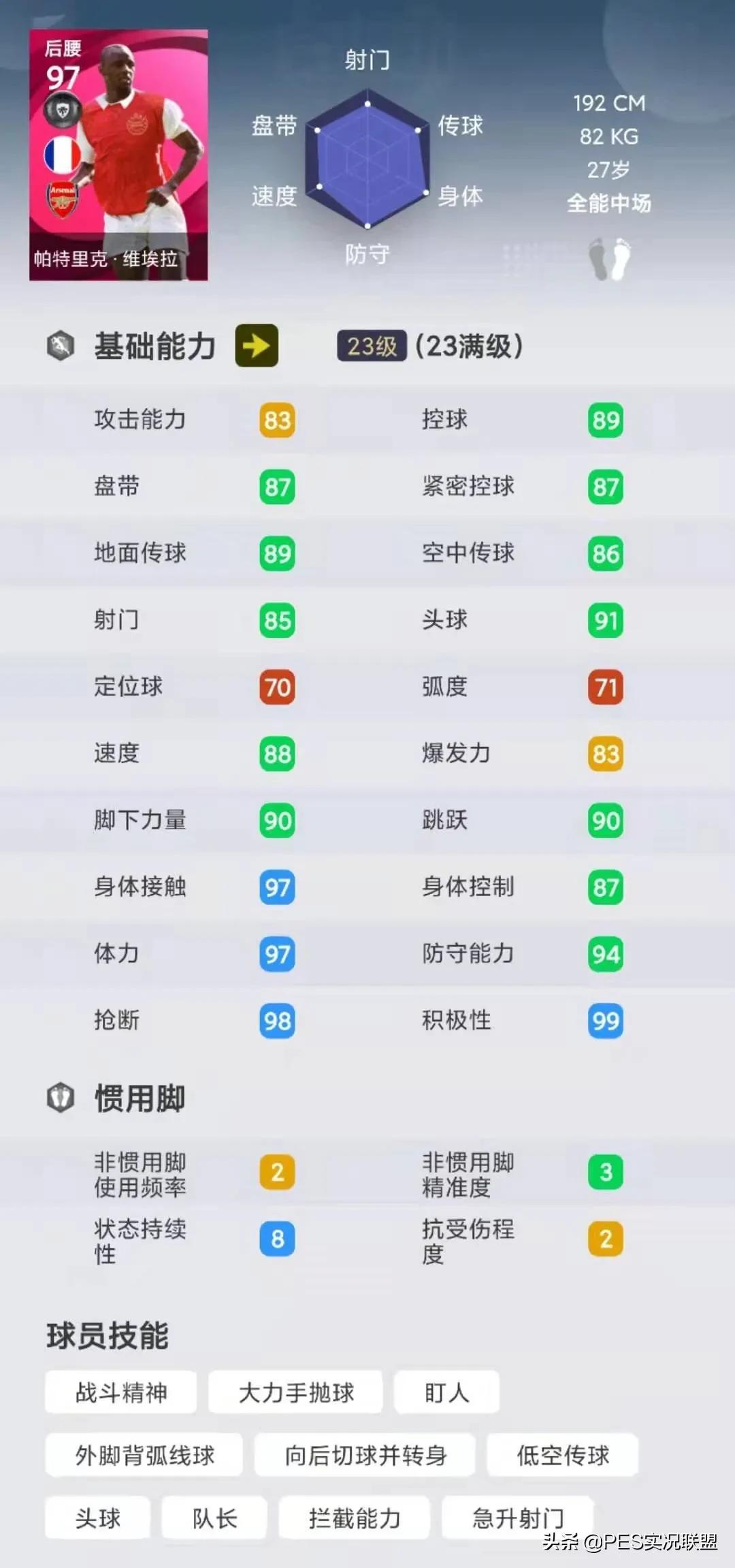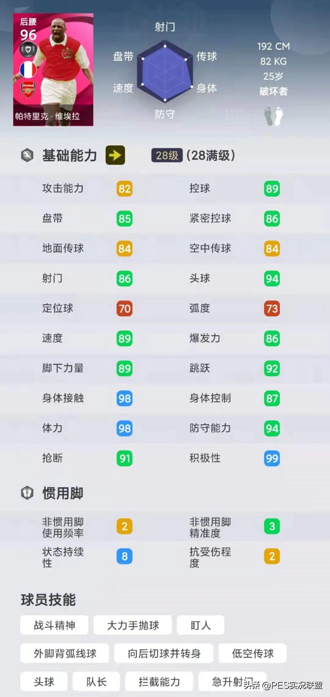 球员简析:从不可替代性的层面来看,维埃拉绝对可以称得上是国服迄今为止最难以取代的神兽。不仅历经多次版本迭代而屹立不倒,而且始终保持着注册位置的超强统治力,这在整个实况足球游戏中都是独一份的存在。