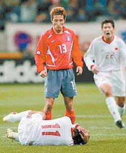 在2003年东亚四强赛上,国足0-1不敌10人韩国,比赛下半时,李乙容怒扇李毅被红牌罚下。