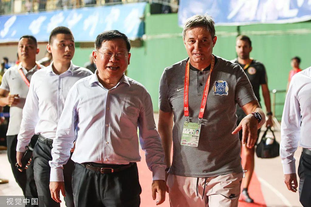 广州富力俱乐部虽然12岁就夭折,但这支球队的主体,却一度是中国足坛长达36年的“不死鸟”。广州城俱乐部的前身为1987年成立的沈阳足球队,是中国职业联赛的发起者之一。1994年,当时的沈阳东北六药队是甲A元年12支参赛球队之一。随后几年,改名沈阳海狮的他们在甲B和甲A都留下了自己的印记。2001年,金德集团入主,沈阳金德足球俱乐部成立。2007年,沈阳金德主场迁移至长沙,更名为长沙金德。2011年,长沙金德足球俱乐部主场迁移至深圳,更名为深圳凤凰足球俱乐部。 广州城俱乐部的前身是沈阳队。2011年6月23日,俱乐部因为财政困难濒临解散,被富力地产收购,更名为广州富力。12年前,富力收购深圳凤凰后当赛季就从中甲冲上了中超,回到中超之后的几年时间里富力成绩相当稳定,甚至还一度扮演了当时的中超霸主、同城球队广州恒大“克星”角色。2014年,富力在前英格兰队主帅埃里克森的带领下,以中超第三名身份这一队史顶级联赛最高排名的成绩,拿到亚冠资格赛席位,并成功晋级正赛,这也是俱乐部队史首次参加亚冠联赛。 此后,在现塞尔维亚队主帅斯托伊科维奇执教期间,富力比赛的观赏性在整个中超数一数二,斯托伊科维奇对于进攻极致的追求让富力的比赛不出意外就是一场进球大战,对于排名中游的球队来说,能够打造出属于自己的风格并不容易。 广州城投资人张力(左)和功勋主帅斯托伊科维奇(右)。做出烧鹅味道的原料不是咸菜