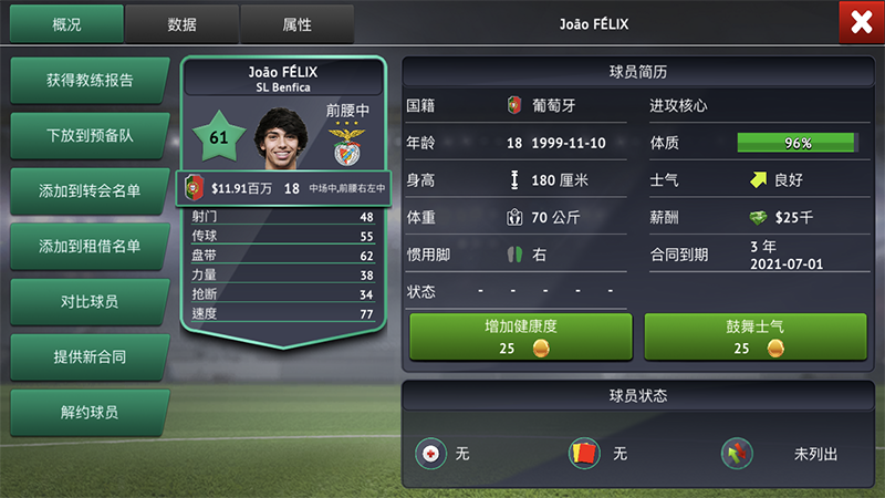 《梦幻足球经理》中玩家可以参与包括联赛、杯赛、冠军联赛、飞行拉练和友谊赛等超多丰富足球赛事。通过不断参加比赛可以提升球员和球队的实力,磨合出更合理的战术和阵型,同时还能赢取丰厚的奖金,用来签约更强的球员以及训练现有球员,进一步提升球队的整体实力。在游戏中,玩家并不能直接参与到游戏的控制,而是通过一种宏观上的战术调整来带领队伍走向胜利,这种模式像极了教练或是经理的角色,非常的有感觉。