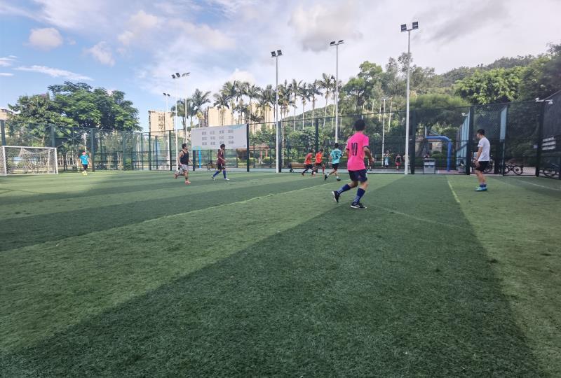 9月5日16时,“梅西”来到了距离珠海拱北口岸四公里的翠东社区公园。公园里有一块篮球场、一块羽毛球场以及一块五人制足球场,足球场就在板樟山脚下,与山顶的“澳门回归百子碑”遥相呼应。“梅西”即将在这里踢上一场比赛。