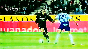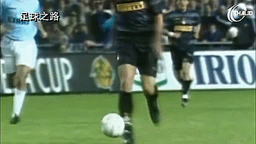 下一个技巧是罗纳尔多切球,这个动作非常有意思,虽然它不常在1V1对抗中出现,但他是变向过人最好的动作。