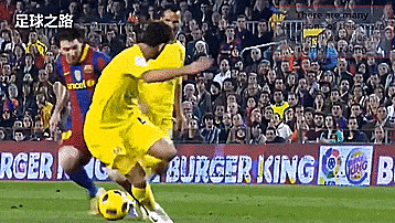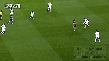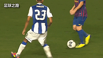 当你面对对手时你可以沉肩虚晃,然后内切变向抑或是向外侧变向,甚至可以像梅西这样不触球连续多个虚晃变向,让对手彻底缴械投降。