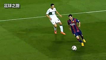 身体虚晃这个动作是最简单的也是最有效的,梅西就是一个典型的例子,这个动作就是身体向一侧虚晃,有很多种变化,就像梅西演示的这样。