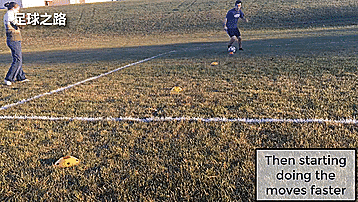 开始时可能会犯错,可能会乱,但是没关系,一定要尽可能快,踩单车、马拉多纳转身、假动作等等想到什么做什么。这个训练没有那么多的条条框框,你只需要不断做第一个进入你脑海的动作就好。