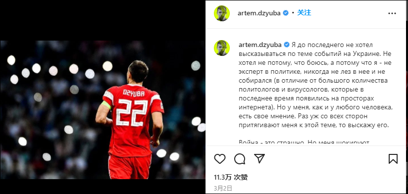去年俄乌军事冲突爆发后,乌克兰国脚米科连科公开辱骂攻击俄罗斯球员,因为他们“集体沉默”,库巴之后在社交媒体Instagram发长文回应。