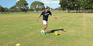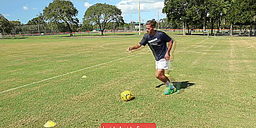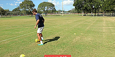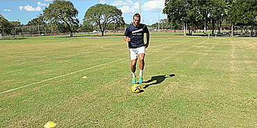 我们先从右脚脚内侧触球开始;