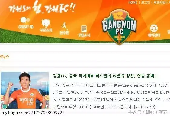 8月7日,2010韩国K联赛,江源FC主场最后时刻丢球2-2战平强大的蔚山现代。中国球员李春郁上演了K联赛的首次表演,首发并打满全场,本场比赛李春郁是球队最主要的罚定位球人选。