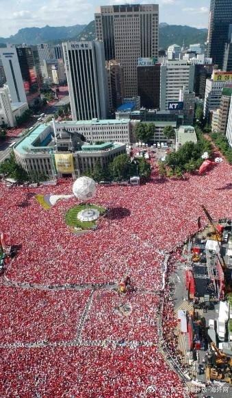 2002年世界杯期间,助威人群挤满首尔街头(《首尔新闻》)