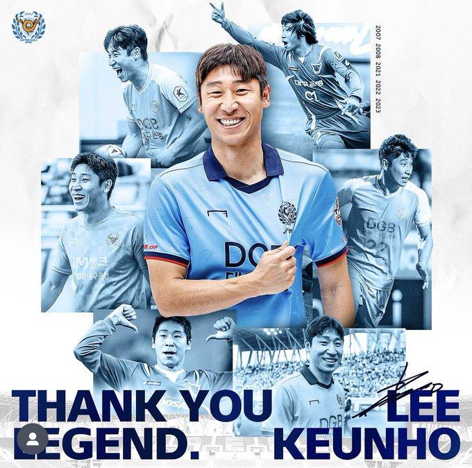 2021年,李根镐选择“叶落归根”,最终荣归故里大邱。对于很多有着足球梦的85后来说,李根镐其实是他们心中的“白月光”,是在孙兴慜之前的绝对偶像。而在本赛季,38岁的李根镐也多次在大邱危难之际挺身而出,为球队带来胜利。截止到目前,李根镐共在K联赛出场385场,攻入80球并有35次助攻,代表国家队也有84场19球的成绩。2023赛季结束后,李根镐整整球员生涯经历了20年,是韩国真正的传奇球员。12月3日,大邱FC主场与仁川联合的比赛前,将进行李根镐的退役仪式,到那个时候,我们再正式和他说“再见”!