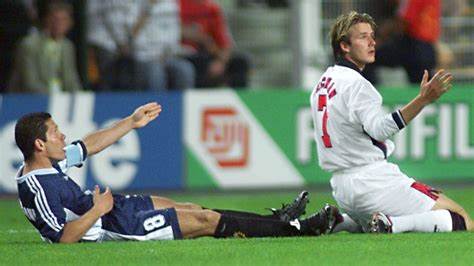 “金毛狮王”巴尔德拉马是站着踢球的古典型前腰中的典范,他踢球的宗旨就是“能站绝对不走,能走绝对不跑”。在那届比赛中,37岁的巴尔德拉马没能带领球队从小组中突围,自己和球队更是在与英格兰队的比赛中充当了贝克汉姆任意球破门时的背景板。