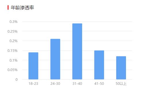而在渗透度方面,80后和90后是最关注的NBA球赛的群体,其中,31-40岁年龄段的人群对NBA有极高的关注度,渗透率达到0.3%。
