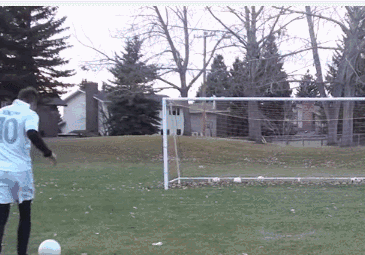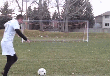 要求,吊射瞬间,支撑脚微曲,后摆的踢球脚迅速发力,使触球部位充分与球底部接触,将球向高处击出后,踢球脚不再更随动作。