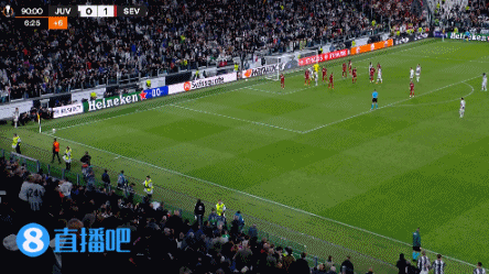 下半场伤停补时6分钟,全场结束,最终尤文图斯1-1塞维利亚。