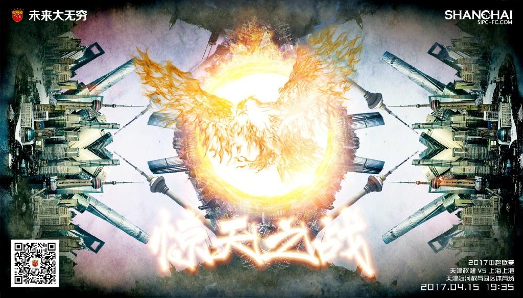 本轮中超联赛,上海上港将在客场挑战实力强劲的升班马天津权健。上港俱乐部官方发布了赛前海报,主题是:惊天之战。
