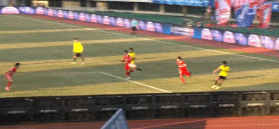 第72分钟,谭凯元禁区左侧连续踩单车后起脚射门,皮球打在了边网上。