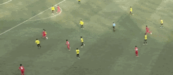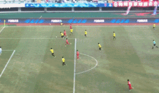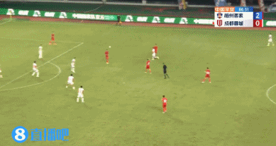 第80分钟,接应队友的右路传中,杨一虎力压防守球员头球攻门击中横梁。