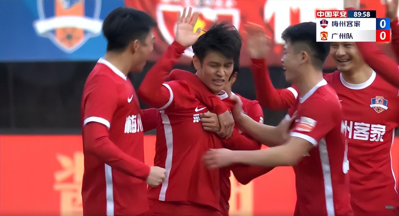 第90分钟,赵文哲头球解围送礼,杨一虎面对老东家进球拒绝庆祝,梅州客家1-0领先广州队。