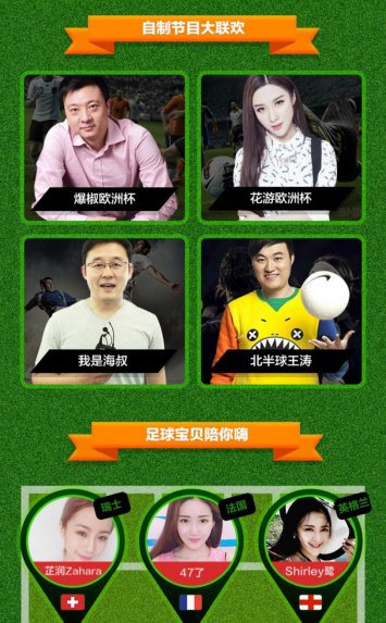 除了自己参与到直播欧洲杯大军中,还可以选择花式观看欧洲杯。《花游欧洲杯》漂亮妹子带你领略法国风土人情,《翻转法兰西》在法国当地与球迷们线上互动,全程关注比赛进程,由BTV足球解说员朱煜明担任主持人的《爆椒欧洲杯》则在国内为广大网友直播,节目每天邀请国安球员和花椒足球宝贝出境,不论帅哥还是美女,你想看的全都有,《我是海叔—欧洲杯特别节目》邀请前国脚孙继海担任嘉宾主持,比赛期间每天与网友进行互动,带你捋清欧洲杯,四档自制直播节目带你360度无死角接触欧洲杯。