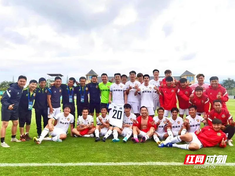 2021赛季中期,球员彭睿遭遇伤病高挂免战牌,牵动着所有湘涛将士的心,5月26日,湖南湘涛在对战延边龙鼎时凭借熊韬的进球1球小胜,进球后的熊韬展示20号彭睿球衣,向受伤队员送去祝福。“有血有肉,有人情味!”这是贾宏给予每一位并肩战斗的湘涛球员的评价。