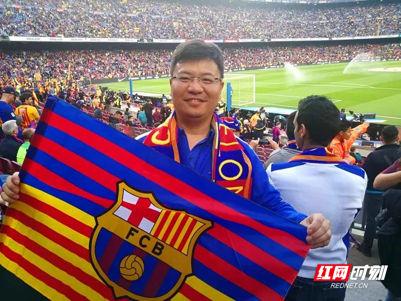 贾宏在诺坎普观看巴萨VS皇马的“西班牙国家德比”。供图/贾宏