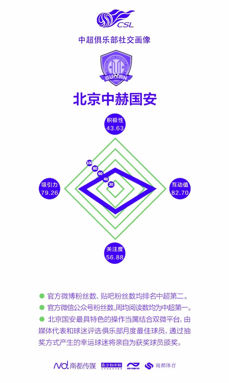 凭借更丰富亲民的内容,北京国安官方微信平均每周阅读数均超过4万,高过恒大,为中超第一名。