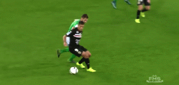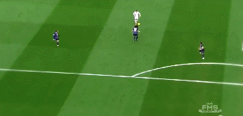 上赛季在面对巴黎时,本-阿尔法面对大卫·路易斯的防守,依然将球兜入远角!
