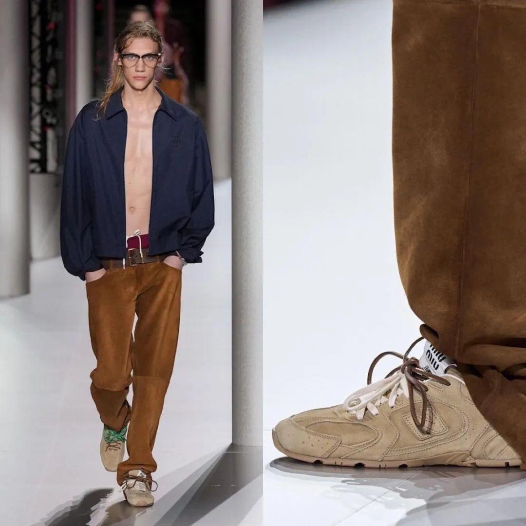跟前面两家宣传策略不同,New Balance 另辟蹊径,年初与大热的奢侈品牌 Miu Miu 推出联名款,合体打组合拳。