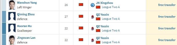 直播吧5月5日讯 据德国转会市场网站确认,四名津门虎球员已经前往中乙球队效力。
