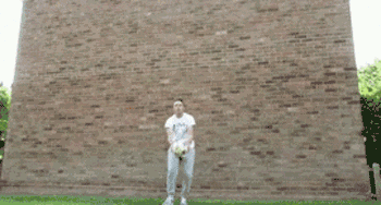 传球练习的方法稍微简单,只要你有一堵墙就够了,如下图,使用左脚对墙传球训练。