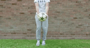 第五个训练,我们先颠球,然后踢球越过头顶,我们依然用脚内侧触球,但是接下来我们用同一只脚的脚外侧推球穿过身体。