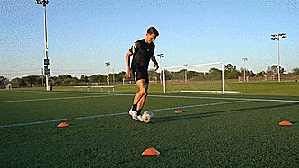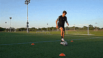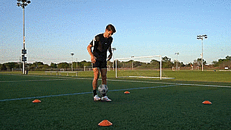 所以我们用同样的技术与球的外侧接触,把它引到地面和脚之间或者只是用脚外侧把球推向相反的方向。