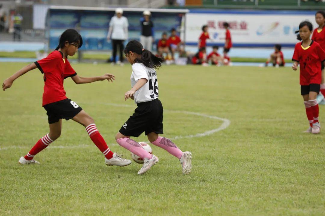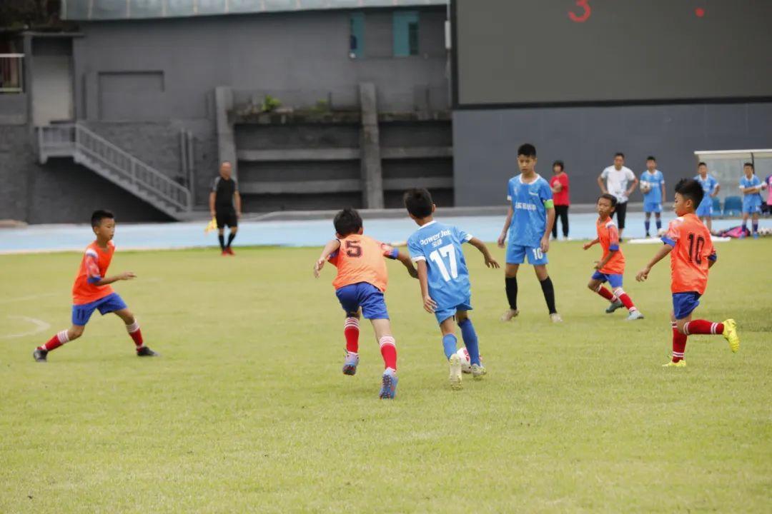 孩子们在比赛中享受足球带来的快乐。