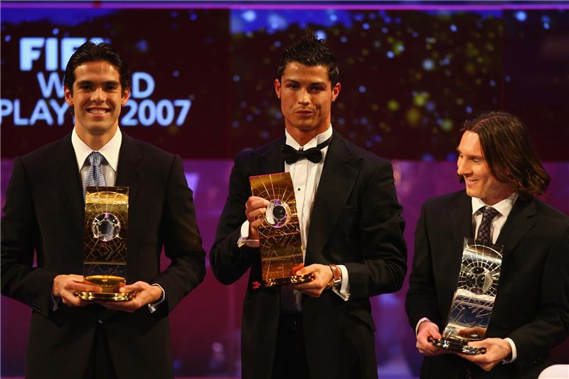 多年以来,即便远赴美职联效力,但卡卡自带的标签从未脱落:自2007年开始,他是唯一一个能在金球奖和世界足球先生评选中击败梅西和C罗的“地球人”。2006-07赛季,凭借欧冠中的高光表现——15场10球,以及AC米兰夺取欧冠的添砖加瓦,卡卡在2007年年末一举包揽了金球奖和世界足球先生的称号。C罗和梅西,只得位列第二和第三位。