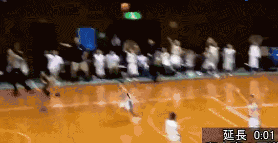 比如,上演“最后一秒神扭转”的日本小学篮球赛。还有1秒,黑方球队还有1分落后,他们没有时间再组织一次进攻,黑方队员直接一个远投,篮球跨越大半个球场,直接射入篮筐,赢了。