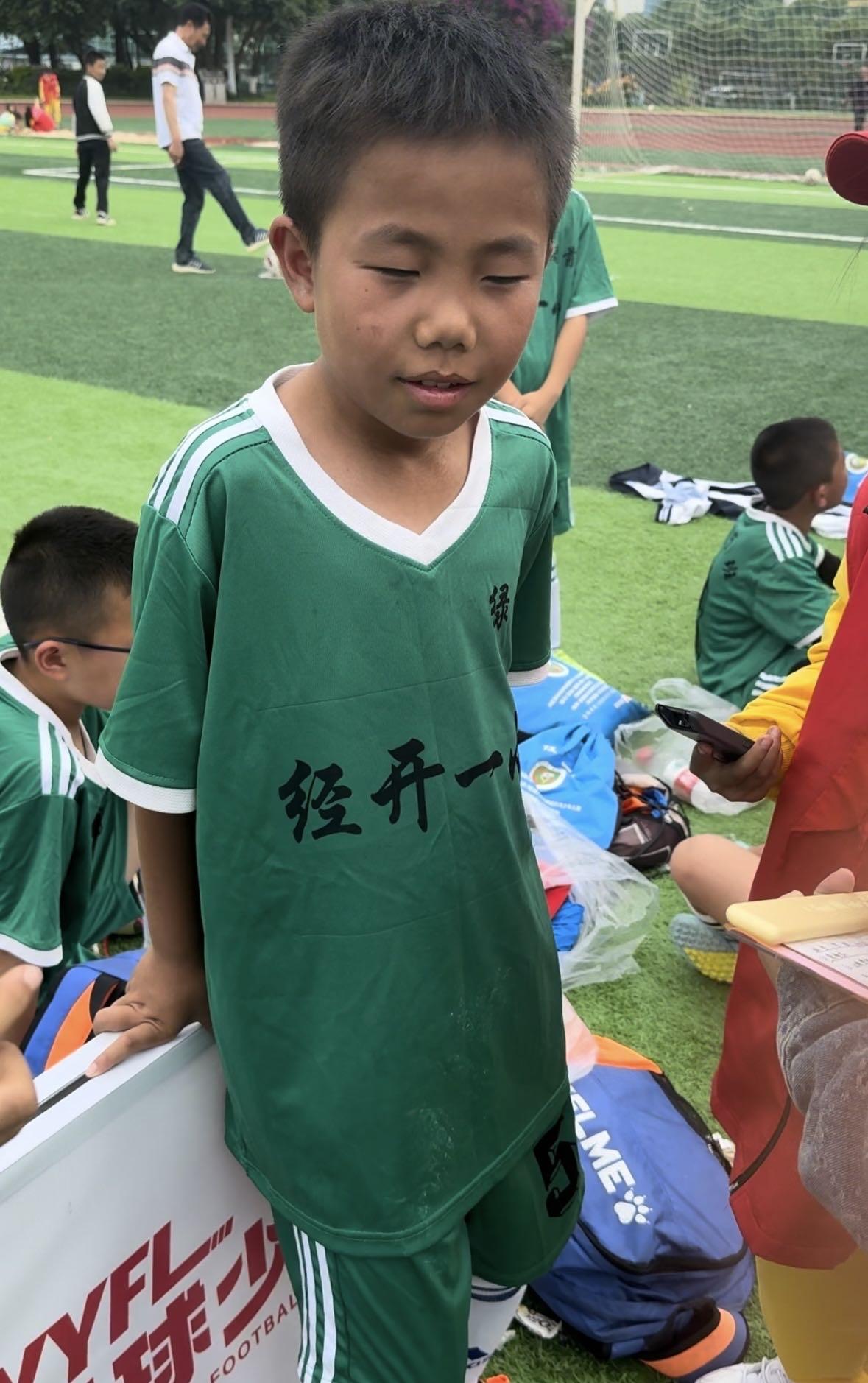 6月1日,一场挥洒汗水的足球比赛在昆明城市学院海源校区拉开序幕。在U10组的第二场比赛中,经开区一小队对战高新一小海源校区队。