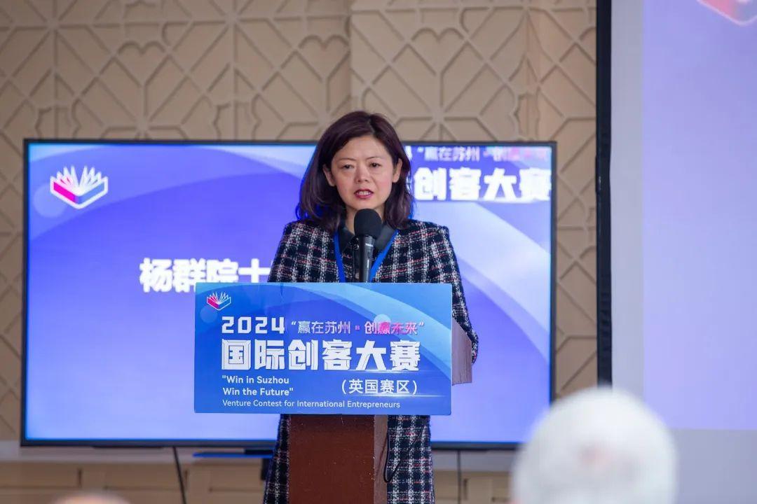 评委代表剑桥大学皇后学院院士杨群发言,她讲述了自己的创业和苏州的渊源,向选手们谈了自己对创业的理解和感悟。