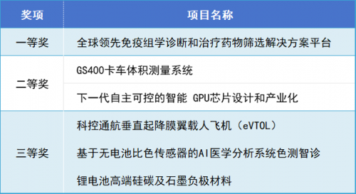 三等奖:“海洋塑料废料转化为油和氢气”,“RNA药物合格性检测系统”以及“云轨立体配送机器人”。