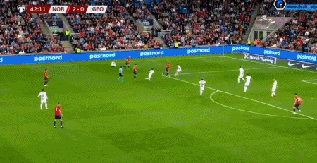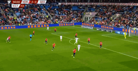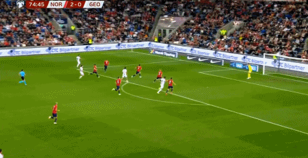 第33分钟,努萨一个变向内切倒三角传球,厄德高迎球劲射破门,挪威2-0