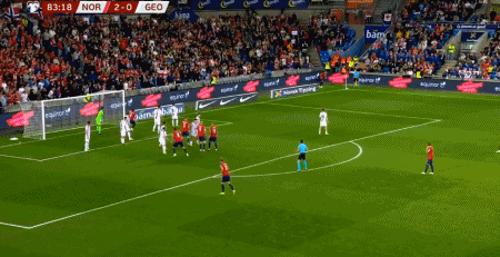 第25分钟,努萨底线传中,哈兰德门前头球破门,挪威1-0