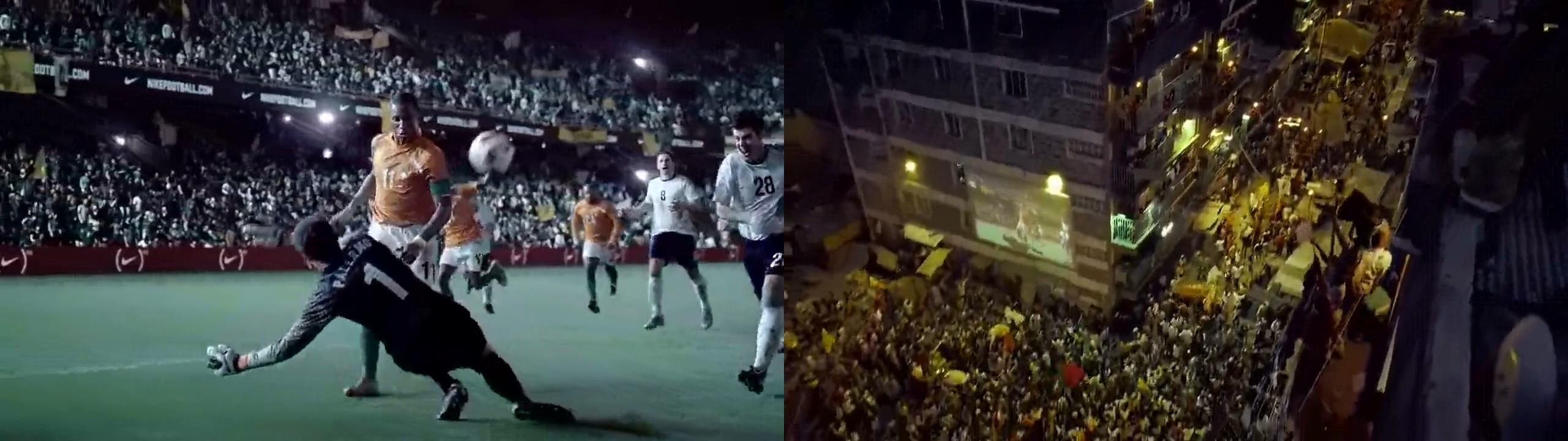 在2010年世界杯赛前,耐克发布【书写未来】的足球广告,整个片子剪辑节奏非常快,拍摄的也很精良,利用蒙太奇的手法,传递了成王败寇的主题。