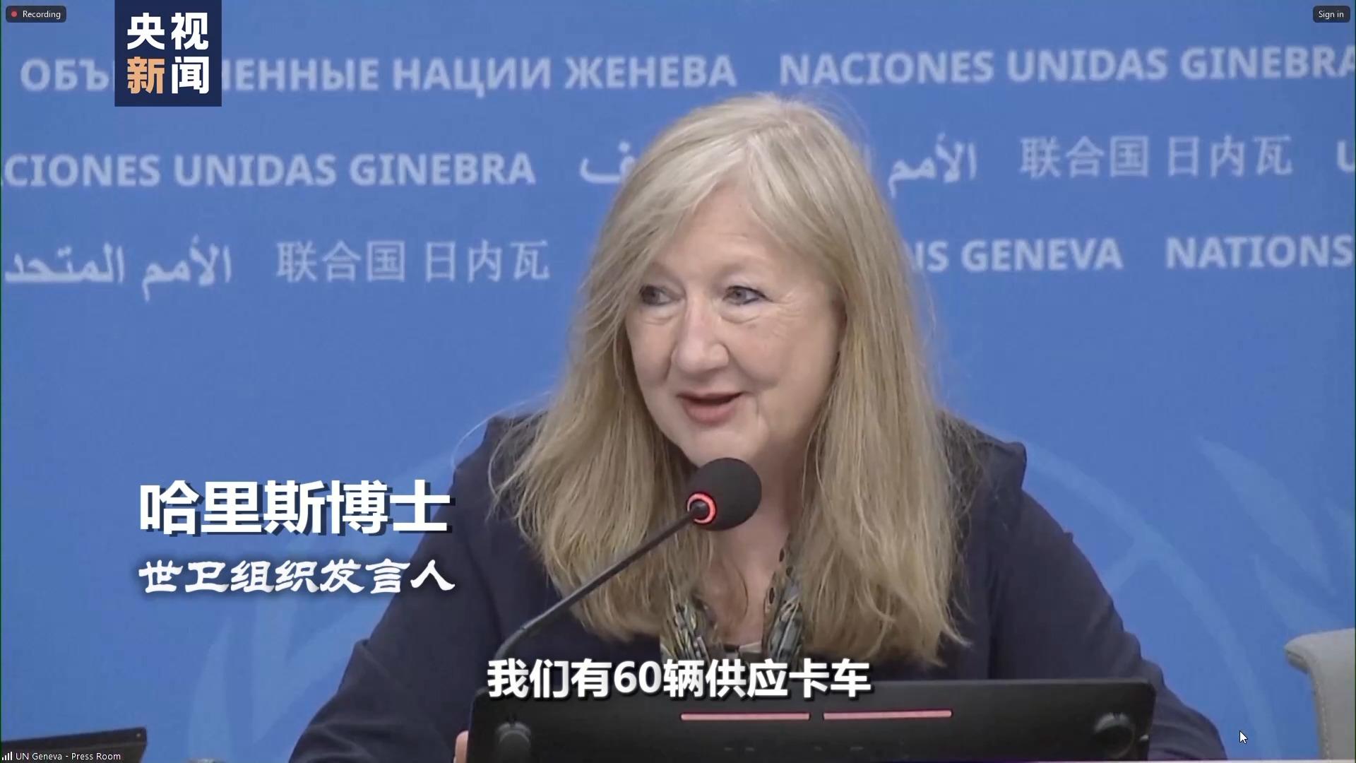 世卫组织发言人哈里斯博士: 由于边境关闭,我们有60辆供应卡车在阿里什等候,无法进入拉法。