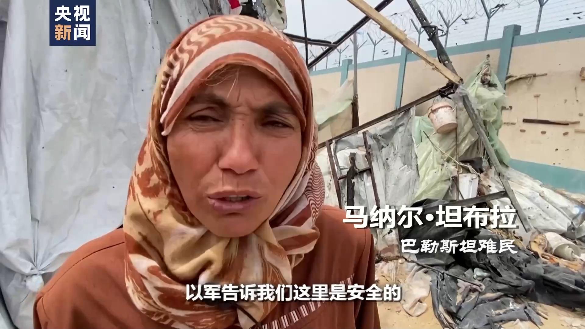 巴勒斯坦难民 马纳尔·坦布拉: 以军告诉我们这里是安全的,告诉我们转移到南部就安全了,我们就来到这里,可他们连住在帐篷里的我们都不放过。