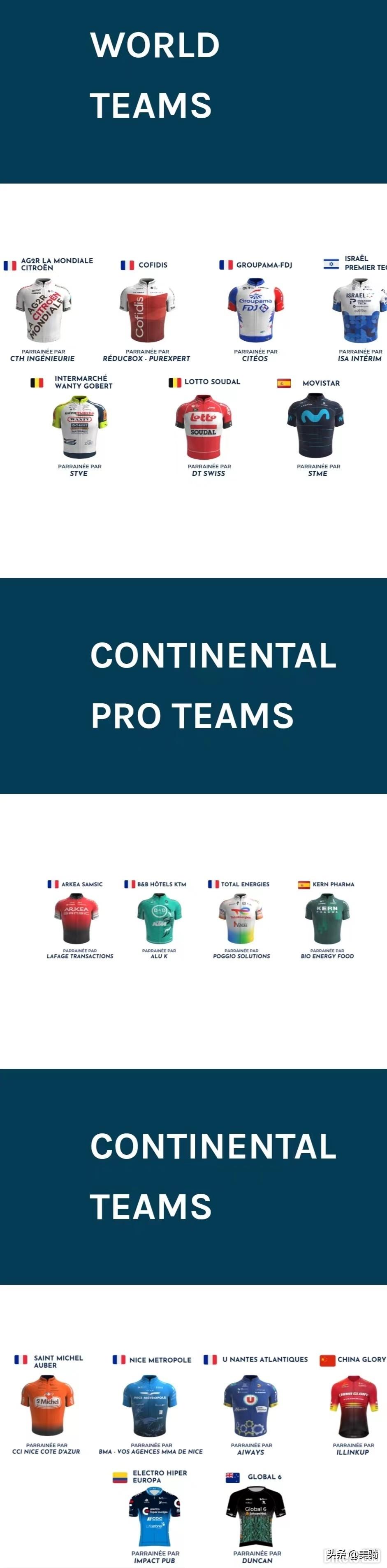 (1)FDJ车队;(2)AG2R车队;(3)科迪菲斯车队;(4)旺蒂车队;