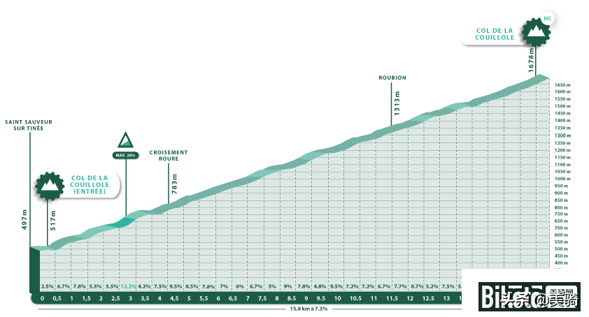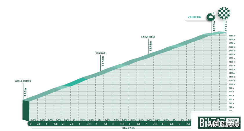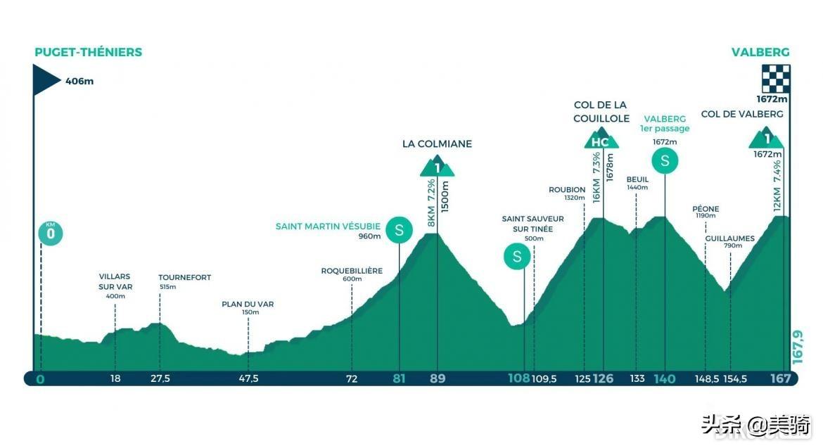 本场比赛总里程167.9公里,荣誉骑行406米,之后开始167.5公里的比赛。比赛设有三个爬坡点,分别是科勒米安山(89公里处,一级坡,其中有8公里7.2%坡)、科依罗尔山(126公里处,HC级坡,其中有16公里7.3%坡)、终点瓦利贝格山(167.5公里处,一级坡,其中有12公里7.2%坡)。与三大环赛的山地赛段不同的是,作为古典赛,参赛选手必将从头至尾不惜体力,比赛竞争激烈程度远超大环赛山地赛段,下面逐个分析三座大山情况。